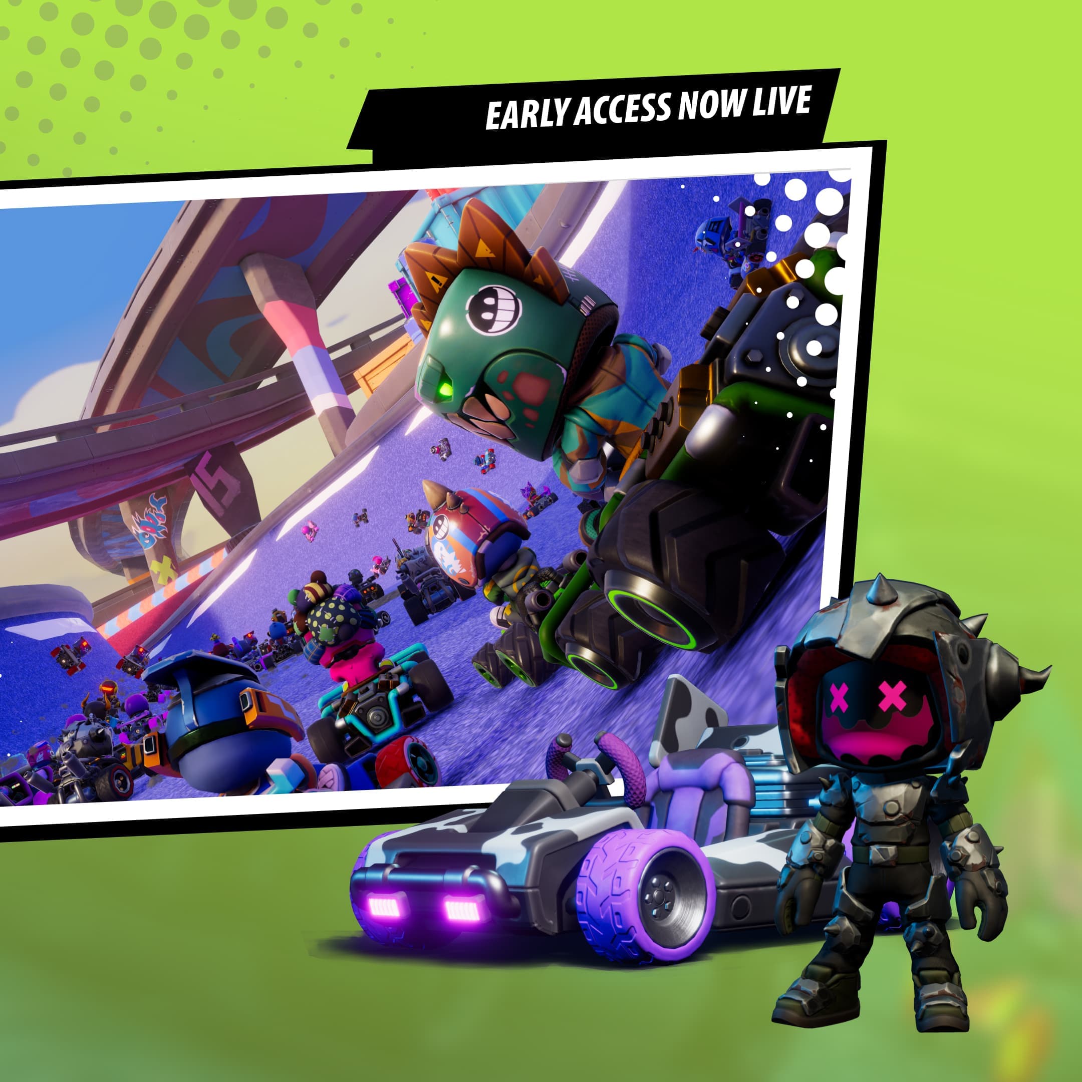 Meanwhile our brand team were working on bold, bright and energy filled key arts - just like the game. Packed with characters, karts and chaos, our creative solution embodies Stampede’s manic multiplayer fun, showcasing crazy tracks and characters.